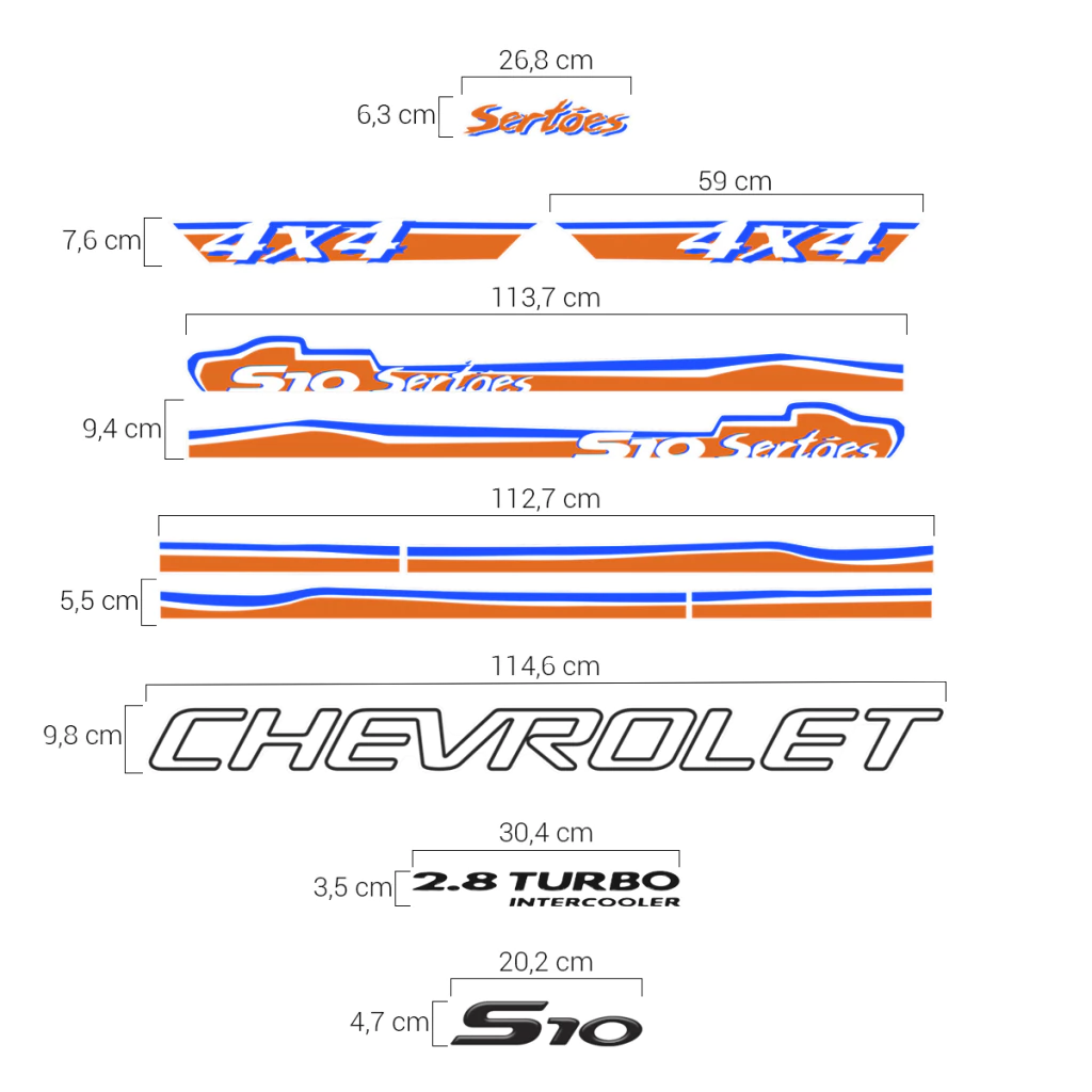 Kit Faixas Adesivos Chevrolet S10 Sertões 2004 2005 Completo -