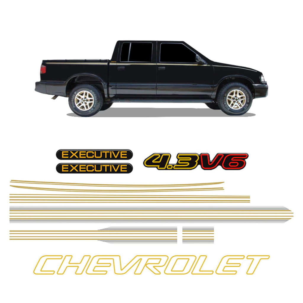 Kit Faixas S10 Executive 1999/2000 Cabine Dupla Chevrolet Adesivo Dourado