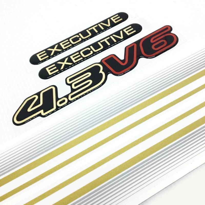 1 Adesivo Resinado 4.3 V6 / Fabricado em Poliéster Dourado / Dimensões: 19,8 x 3,3 cm