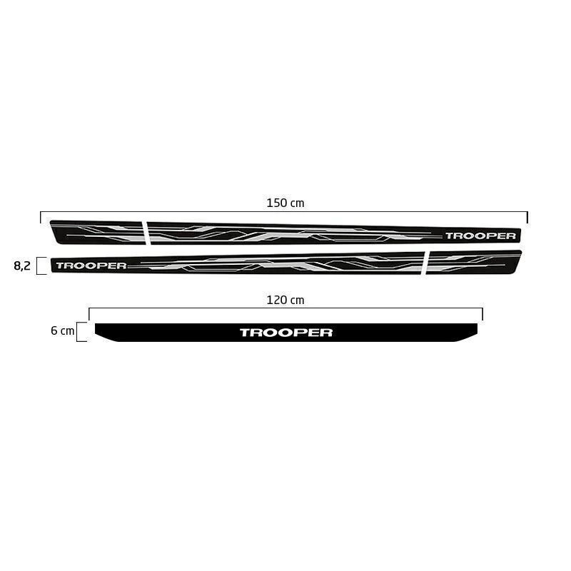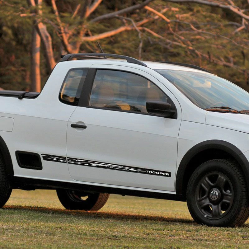 2 Faixas Laterais Saveiro Trooper / Fabricado em Vinil Prata / Dimensões: 150 x 8,2 cm