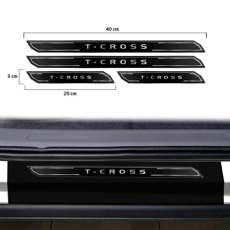 Soleira Do Porta-Malas Volkswagen T-Cross 2019 / 2020 + Soleira da Porta Diamante Com Black Over (Adesivos Protetores)