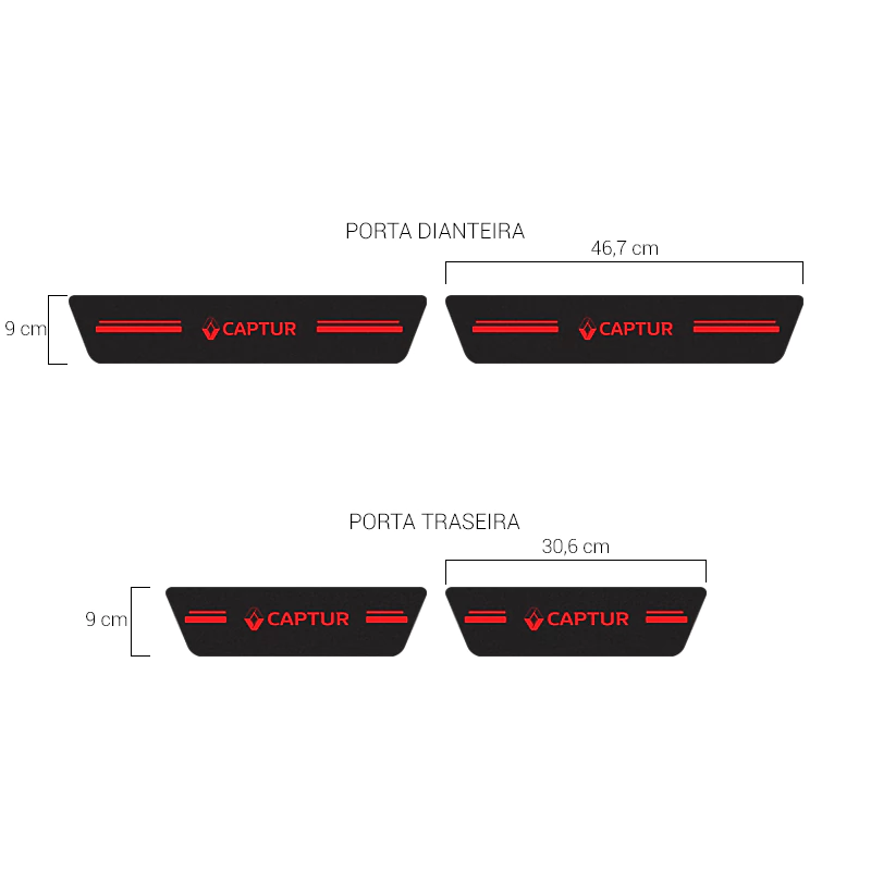 2 Soleiras Captur (Traseiras) / Fabricado em Vinil Texturizado / Dimensões: 30,6 x 9 cm
