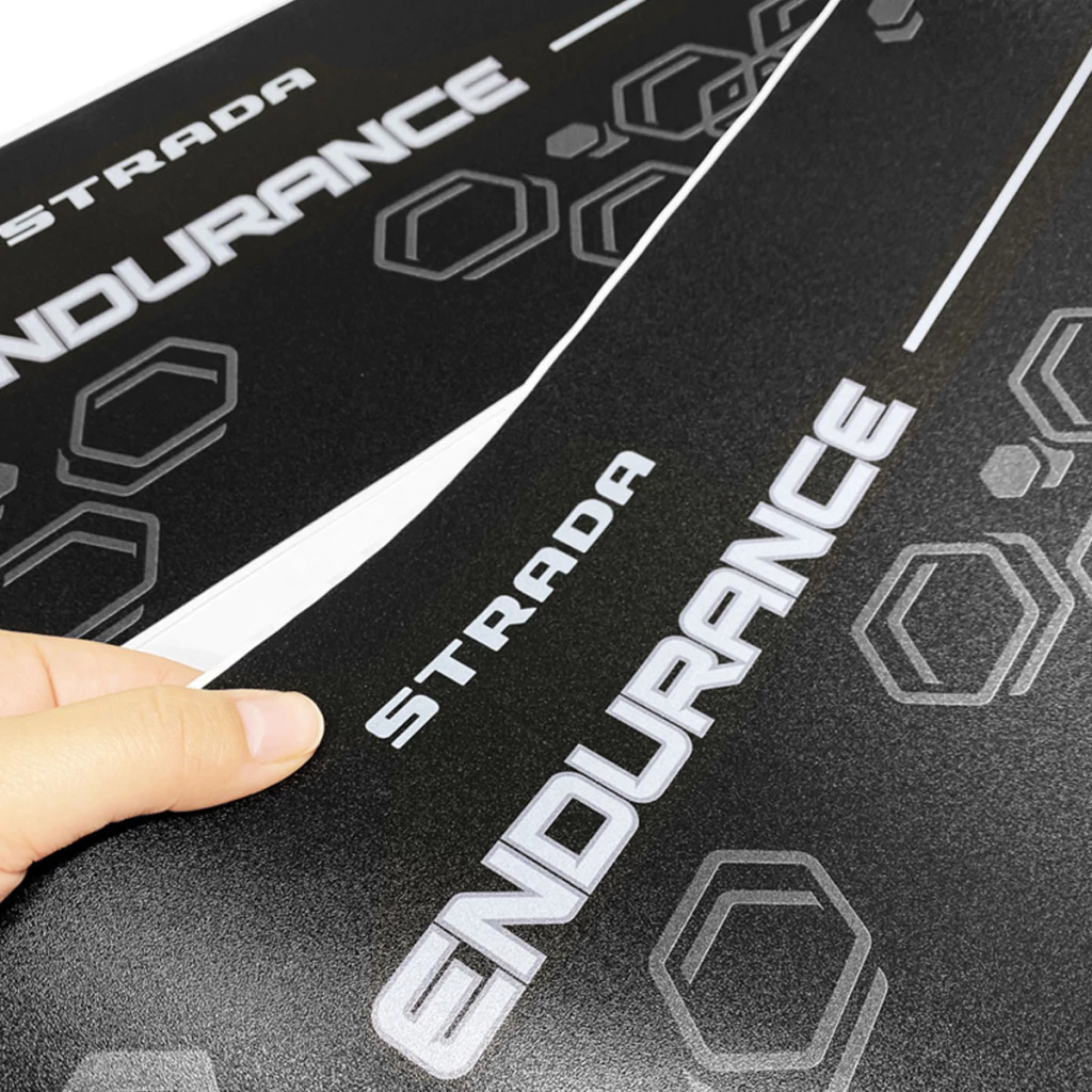 As faixas são produzidas em Vinil automotivo autocolante importado, dispensando a utilização de produtos para fixação. Sua impressão é feita em maquina UV, com essa tecnologia as faixas estão protegidas por mais tempo da ação do tempo (Exposição ao sol e a chuva), dando mais durabilidade e dispensando a necessidade de verniz no final da aplicação.