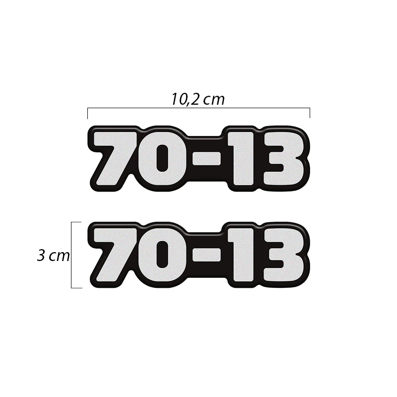 _x000D_2 Emblemas 70-13 / Fabricado em Vinil Refletivo / Dimensões: 10,2 x 3 cm
