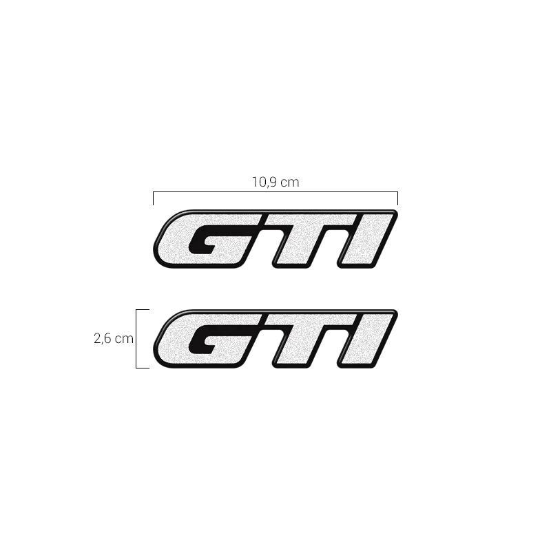 Características: 2 Adesivos GTI / Fabricado em Vinil Prata Refletivo / Dimensões: 10,9 x 2,6 cm