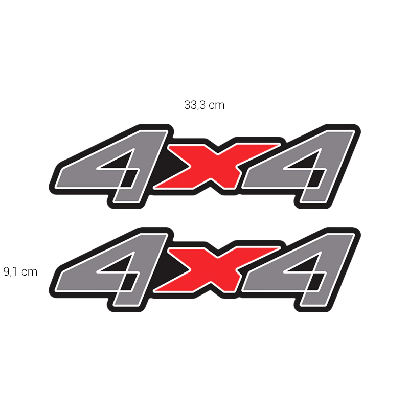 2 Adesivos 4x4 / Fabricado em Poliéster Cromado / Dimensões: 33,3 x 9,1 cm