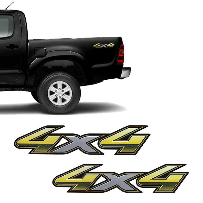 Par De Adesivos 4x4 Toyota Hilux Flex 2013 À 2015 Dourado
