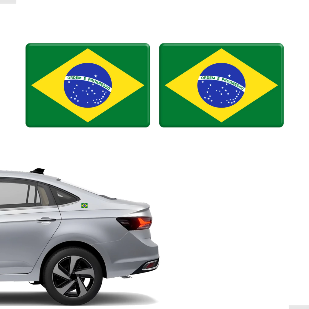 Par De Adesivos Bandeira Brasil Resinado Emblema Universal - Adesivo para Moto, Carro, Notebook, Geladeira, Caderno...