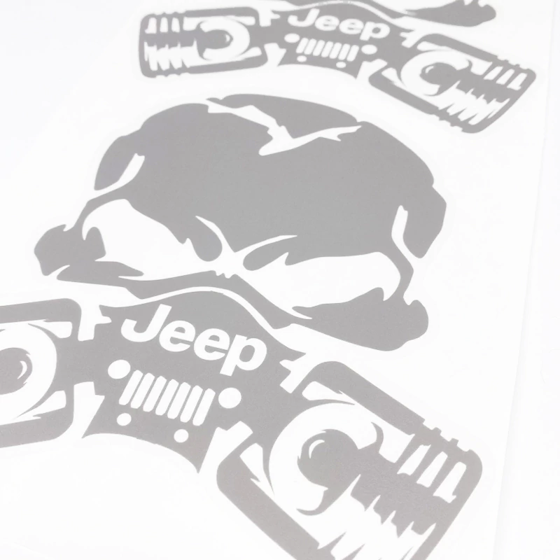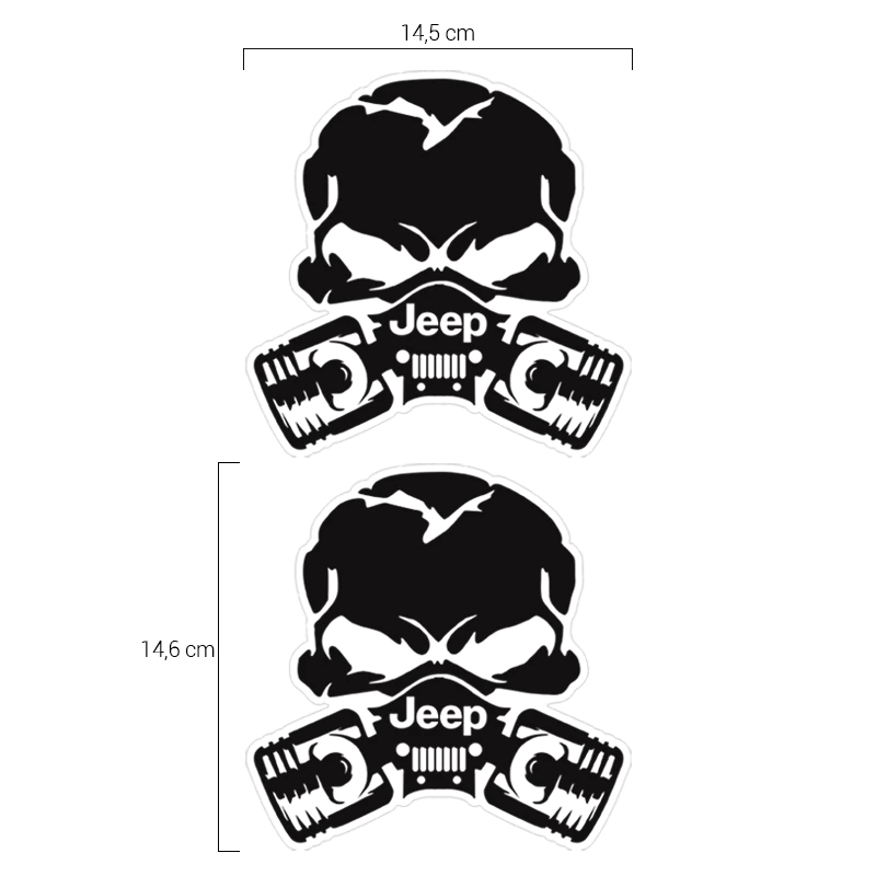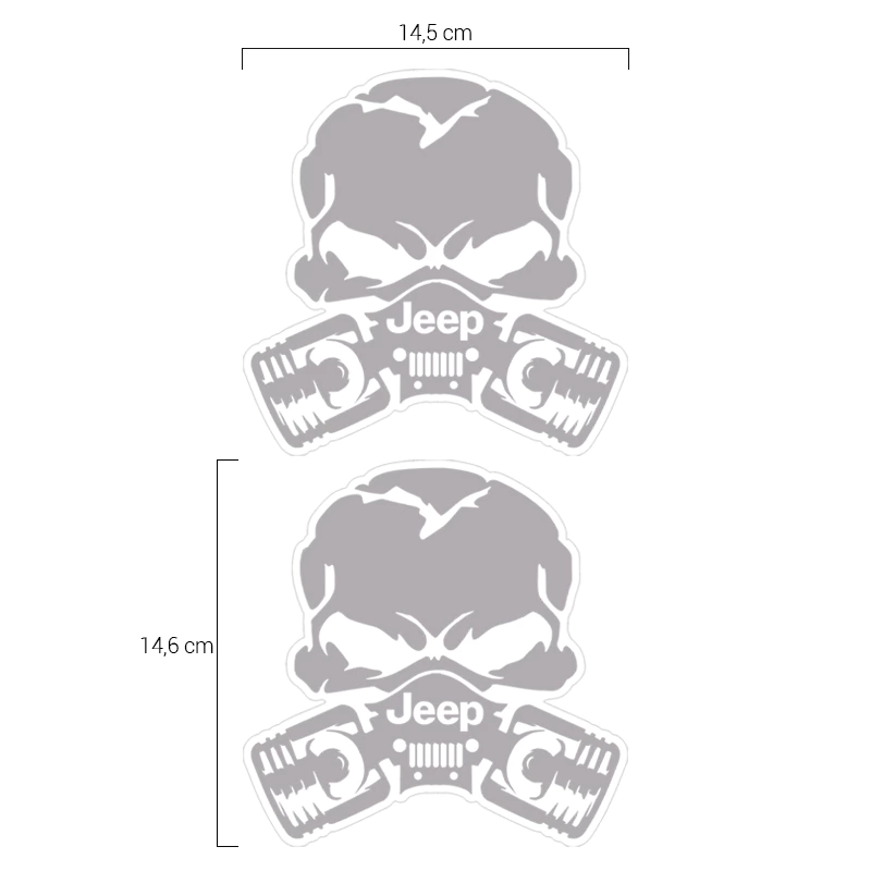 Par de Adesivos Caveira Jeep / Fabricado em Vinil Transparente / Dimensões: 14,5 x 14,6 cm