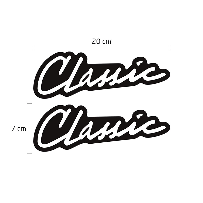 2 Emblemas Classic / Fabricado em Vinil Branco / Dimensões: 20 x 7 cm