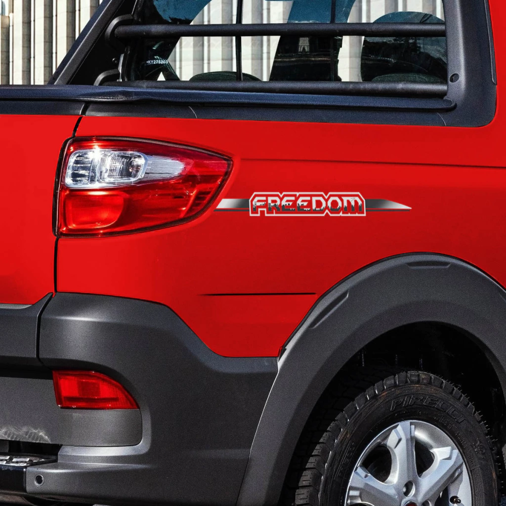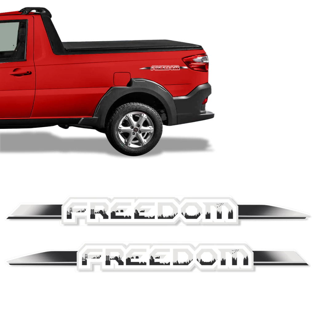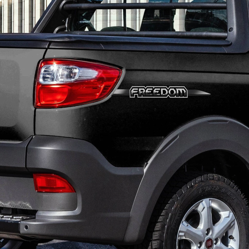 Par De Adesivos Freedom Fiat Strada 2019 2020 Emblema Lateral Branco