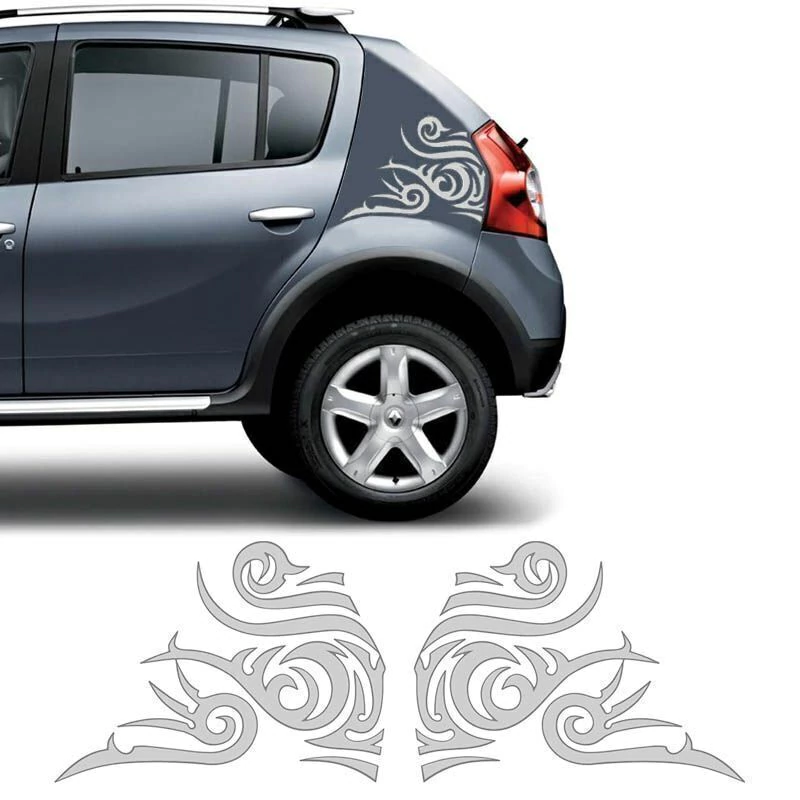 Par De Adesivos Tribal Cinza Sandero Stepway
