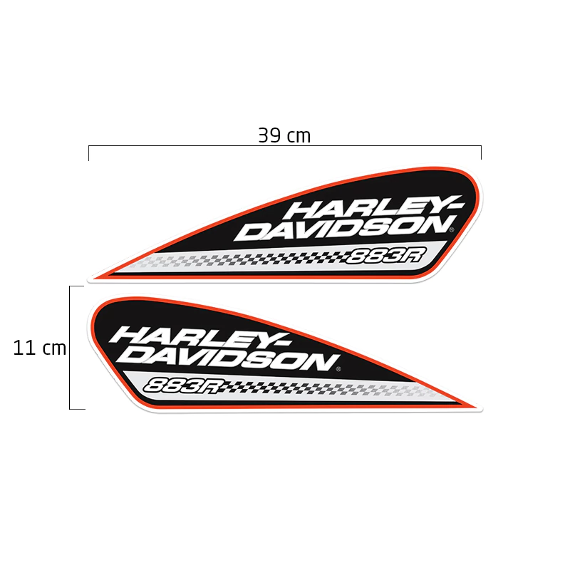 Adesivo Genérico.Os adesivos para motos, além de determinar, em muitos casos, o modelo do veículo, também personalizam e protegem a pintura. Os adesivos são produzidos em vinil automotivo autocolante importado, dispensando a utilização de produtos para a fixação e já possuem verniz automotivo, dessa forma, as faixas estão protegidas da ação do tempo (Exposição ao sol e a chuva). Par de Adesivos Tanque Harley Davidson 883r Faixa Lateral - Itens Inclusos:2 Adesivos Harley Davidson 883r / Fabricado em Vinil Branco / Dimensões: 39 x 11 cmCaracterísticas Dos Adesivos:Quantidade: 2 Adesivos Harley Davidson O Adesivo garante um estilo único a sua moto, mantém a originalidade e valoriza o seu veículo. Observações:Material autocolante.Resistente à chuva e raios UV.Embalagem segura para o transporte.Vinil importado. Instruções Para Aplicação:1 - Limpe e remova qualquer impureza na área de aplicação do produto.2 - Limpe as mãos e remova o protetor do liner.Procure ter o mínimo de contato com a face adesiva.3 - Centralize o produto no local da aplicação. Após esse posicionamento,pressione o produto gradativamente, sempre do centro para as bordas.Procure retirar todas as bolhas.4 - Após finalizar a instalação, não tente retirar a peça para reposicioná-la,pois isso danificará o produto. OBS: Para limpeza e conservação do produto, utilize apenas água e sabão neutro e/ou automotivo.Recomendamos que a aplicação seja feita por um profissional. Garantia de 1 ano.