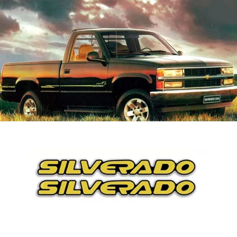 2 Adesivos Resinados Silverado Dourado – Fabricado em Poliéster Cromado – Dimensões: 28,5 x 2,8 cm