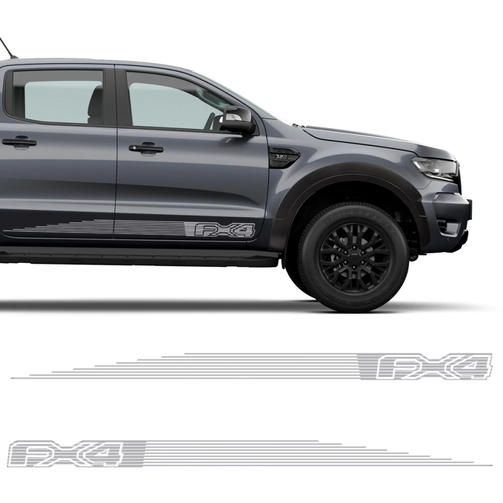 Par De Faixas Laterais Para Ford Ranger Fx4 2023 Cinza Com Verniz