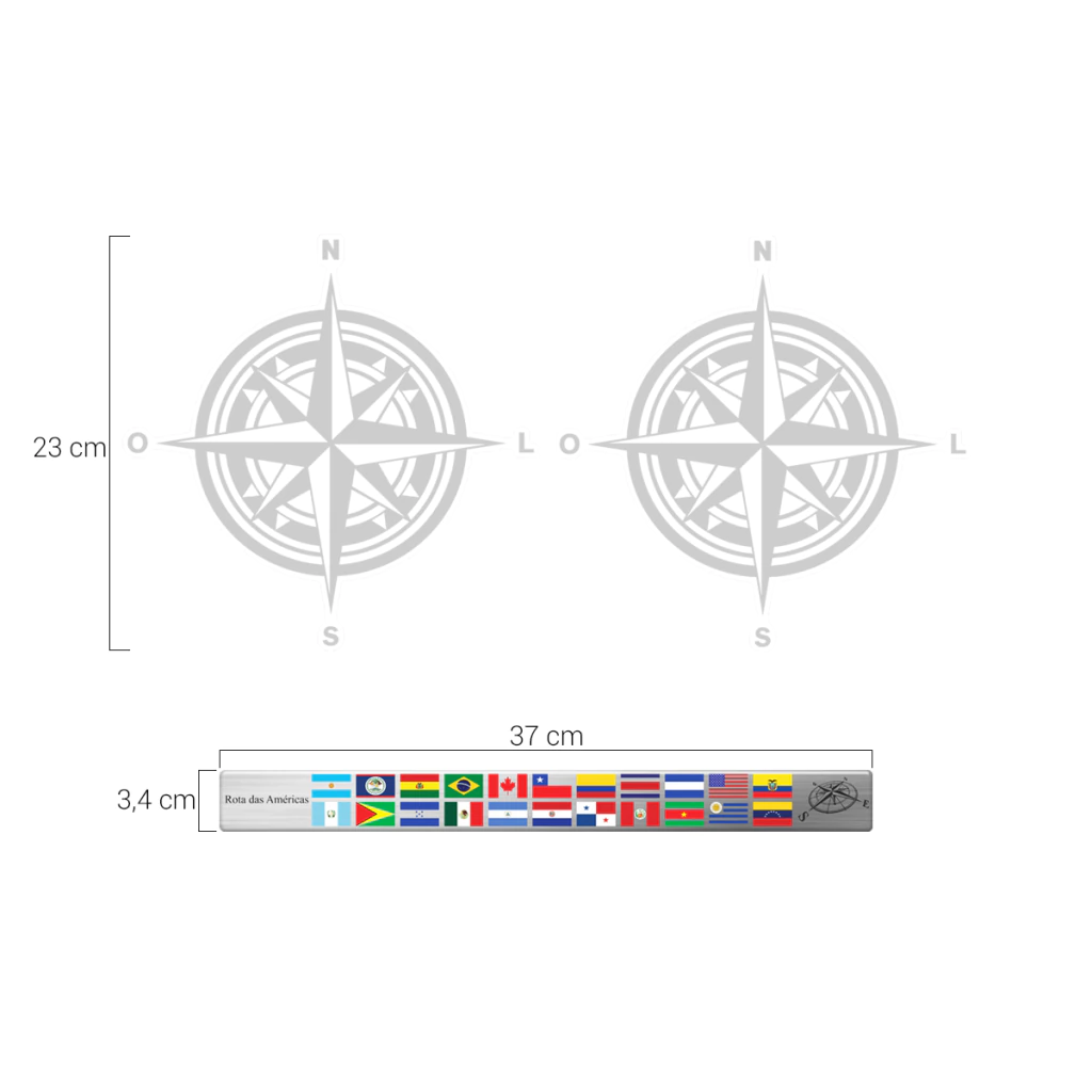 Rota das Américas + Adesivo Bússola Rosa dos Ventos Cinza