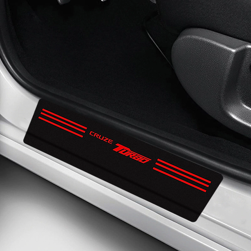 Kit 4 Soleiras Da Porta Chevrolet Cruze Turbo Adesivo Protetor Preto Lixa