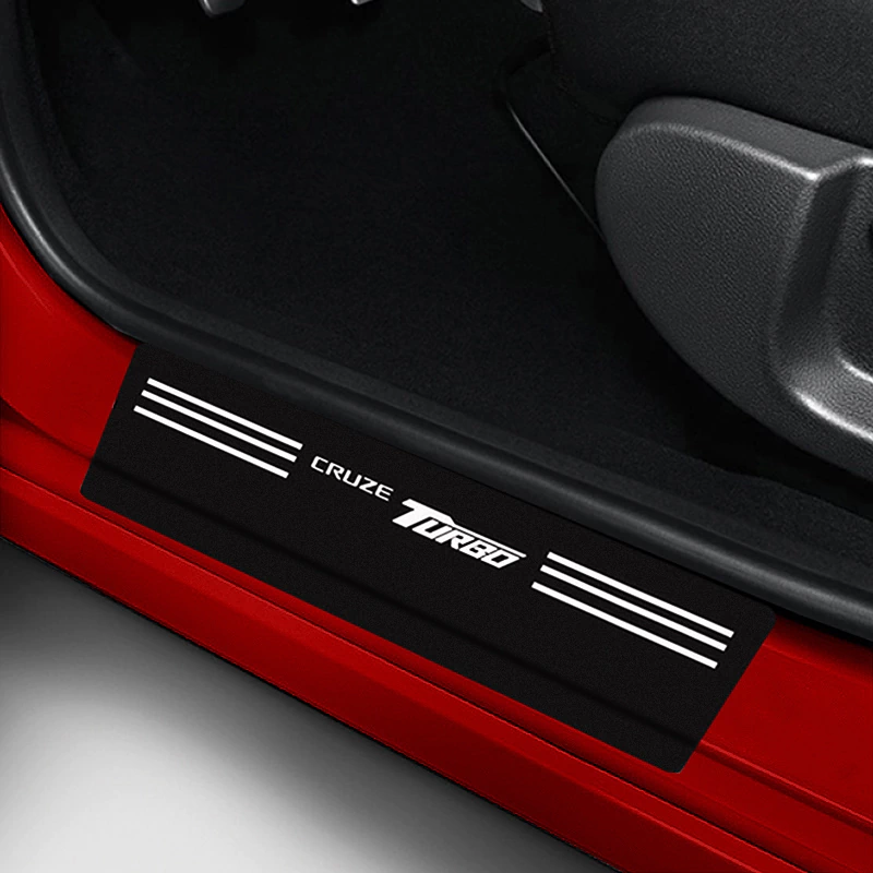 Kit 4 Soleiras Da Porta Chevrolet Cruze Turbo Adesivo Protetor Preto Lixa