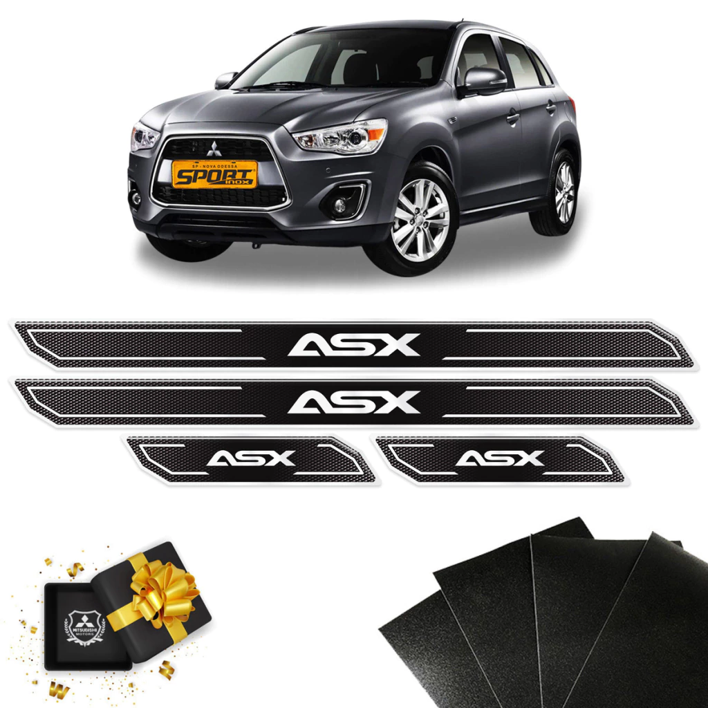 Soleira Diamante Linha Mitsubishi Asx 2011 2012 2013 2014 2015 2016 2017 2018 2019 2020 2021 2022 E Protetor De Porta Black Over + Brasão