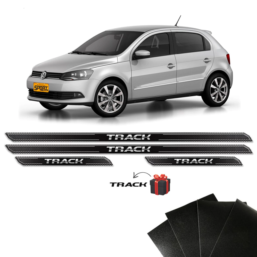 Soleira Diamante Track Gol Voyage 2013, 2014, 2015 e 2016 E Protetor De Porta Black Over + Adesivo Track